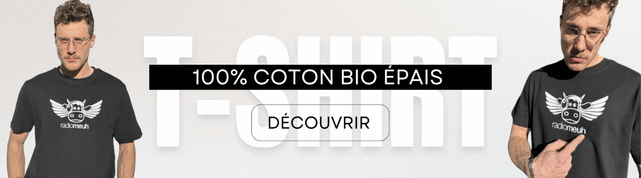 Découvrez la nouvelle génération de T-shirts Radio Meuh : une pièce pensée pour durer, en coton bio épais 215 g/m², avec la vache ailée iconique imprimée grâce à une nouvelle technique pour un rendu encore plus éclatant.